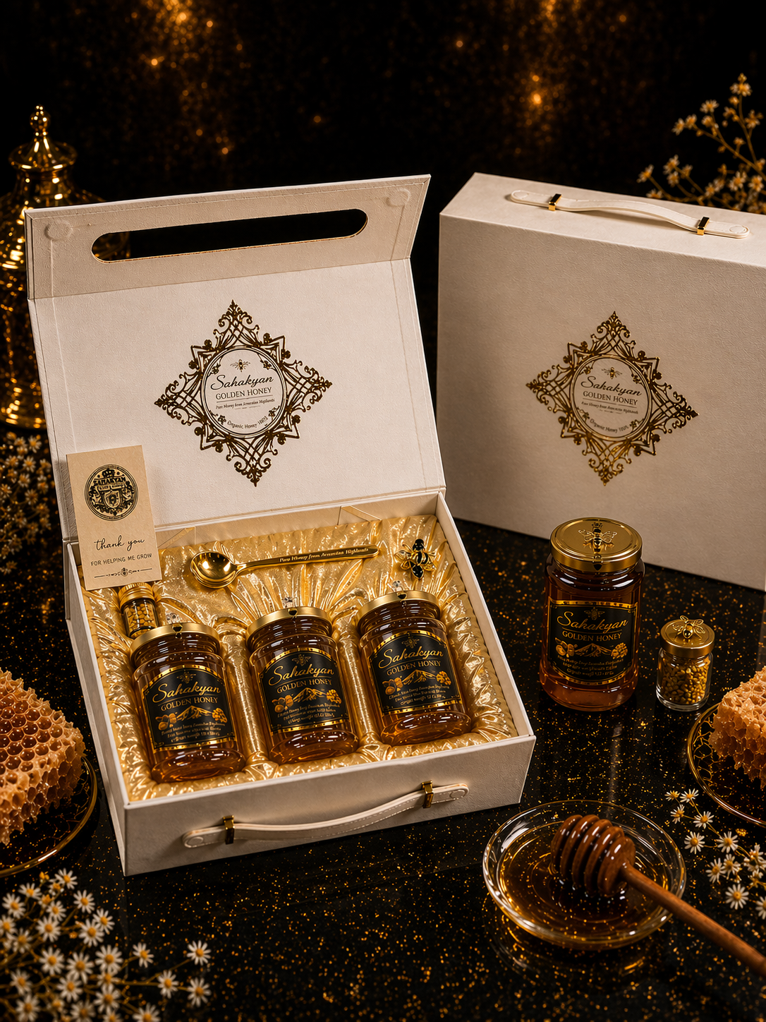 It is strength, health, and harmony, crafted by nature, and gifted by God. We are expanding our horizons. Sahakyan Golden Honey is now available for global export, bringing the pure essence of our highlands to Europe, the USA, and beyond. We seek partners who value authenticity and premium craftsmanship.